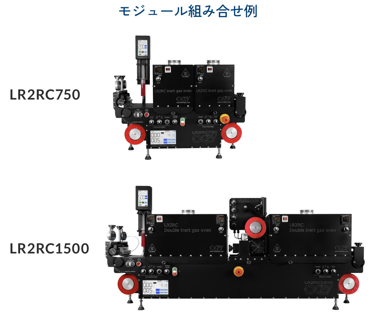 InfinityPVの製品は、研究開発用途に最適化されたモジュール設計を採用しており、多様なパーツの中から目的や課題に応じた最適な組み合わせを選択できます。操作性にも優れており、初めての方でも扱いやすい点が特長です。モジュールを組み替えることで、同一装置を別の用途へ柔軟に展開できるため、試作内容の変化にも対応可能です。ベースとなるプラットフォームは500/750/1000/1500mmの4種類を用意しており、基材幅は最大200mm(Standard)または310mm(Wide)まで対応します。